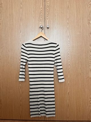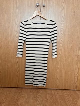 Precioso vestido de rayas de la marca Stradivarius. Es de punto, de manga tres cuartos, y tiene un corte ajustado. - Ideal para cualquier ocasión. - Tejido suave y agradable al tacto. - Perfecto estado, apenas se ha utilizado un par de veces. - Talla S.