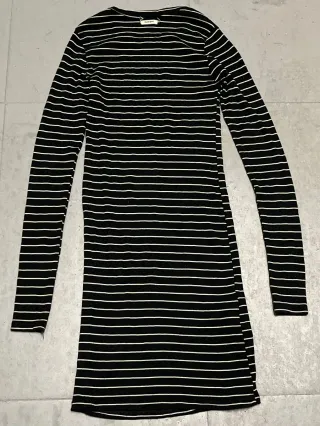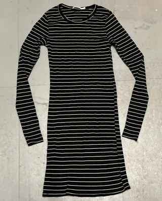 Vestido de manga larga con un diseño de rayas clásicas. - Diseño de rayas horizontales. - Manga larga. - Corte ajustado. Segunda mano, marca double agent, talla S, algodón, modal y elastan