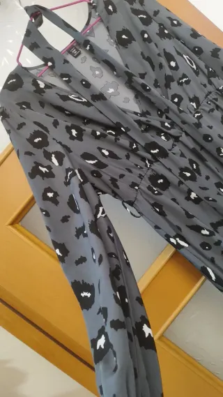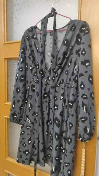 Vestido cruzado estampado leopardo gris