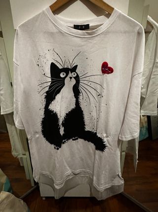 Vestido Camisa Gato Dibujo Talla 44