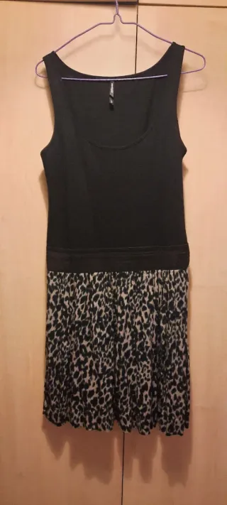 Vestido de Bershka con un diseño moderno. - Parte superior negra. - Falda con estampado animal print. Y con forro.