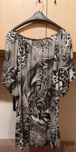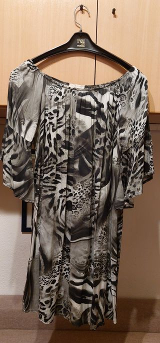 Vestido con diseño animal print, talla única, manga francesa Vestido con diseño animal print, talla única, manga francesa. Composición 100% viscosa.