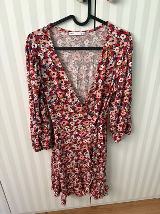 Vestido de Zara con un bonito estampado floral. Ideal para cualquier ocasión. - Diseño con escote en V. - Mangas largas abullonadas. - Cintura marcada. - Bajo con vuelo.