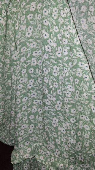 Vestido ligero con un bonito estampado. - Escote en V. - Cintura elástica con cordón. - Mangas largas abullonadas. llevo talla s y me está amplio