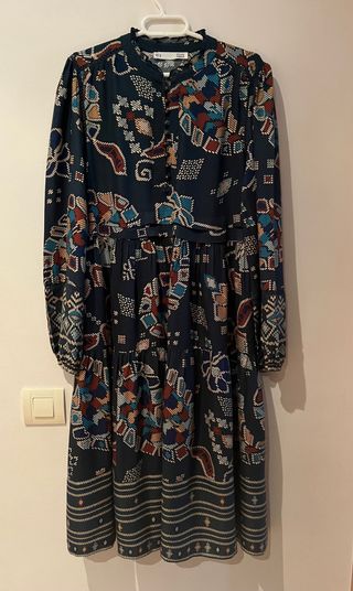Vestido de manga larga con un bonito estampado. - Diseño cruzado en la parte delantera. - Cintura elástica fruncida. va entero forrado a excepción de las mangas. nuevo con etiqueta. muy ponible y favorecedor