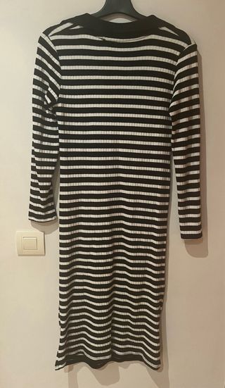 Vestido de manga larga con estampado de rayas marineras. - Diseño de punto acanalado. - Cuello tipo polo con escote en V.