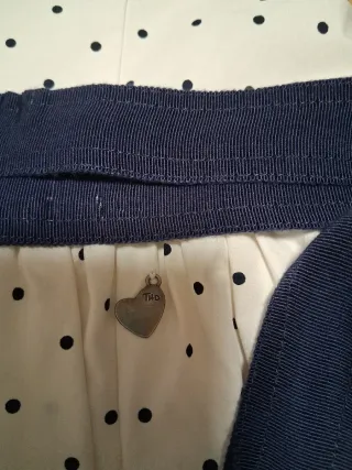 Vestido de corte recto con detalles de lunares. - Diseño con mangas cortas. - Panel lateral con estampado de lunares blancos sobre fondo oscuro. Elegante vestido azul marino con manga corta y detalle de lunares blancos en los hombros que le da un toque original y diferente. -Nuevo sin uso (procedente de cierre de tienda) -Corte favorecedor y muy versátil. -Fácil de combinar. Fabricado en Francia.