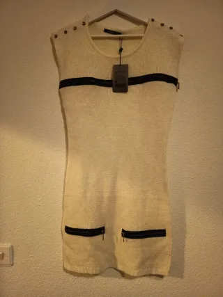 Vestido de punto sin mangas con detalles de cremallera. - Cremallera horizontal en el pecho. - Dos bolsillos con cremallera en la parte inferior. - Detalle de tachuelas en los hombros.