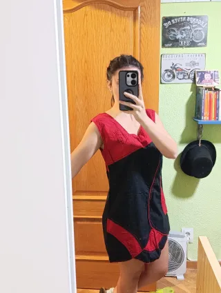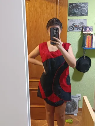 Vestido de la marca Pepe Jeans, en talla M. Solo se ha usado una vez. - Diseño estampado en rojo y negro. - Manga larga. - Falda con volantes.