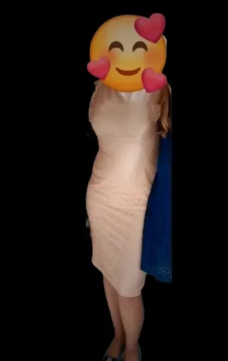 Elegante vestido midi de encaje en color rosa palo. Mangas tipo casquillo de encaje y un escote redondo. El encaje es un tejido versátil que representa delicadeza y sofisticación, adecuado tanto para ocasiones informales como formales, como cócteles o eventos de negocios. Puesto en una ocasión (boda día) Puedes completar el look (idea de invitadaperfecta) con los zapatos destalonados de Zara azul/negro y el tocado "perlas" en tono rosa palo) todo ello también lo puedes encontrar en mi armario.