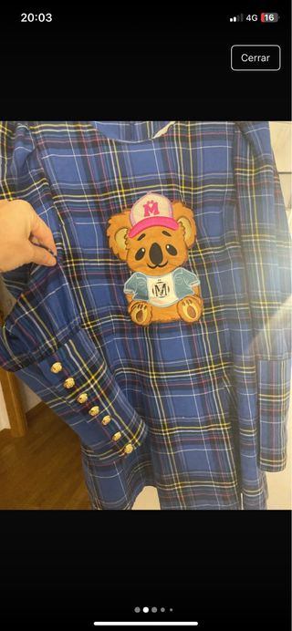 Vestido de la marca Mangata con un divertido estampado de cuadros. - Diseño con estampado de cuadros. - Detalle de un koala con gorra en la parte delantera. - Mangas largas.