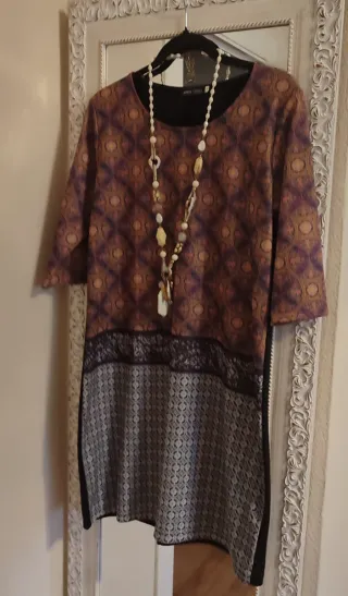 Vestido de terciopelo suave con un bonito estampado animal print. - Diseño con cuello en V. - Mangas acampanadas. Medidas de axila a axila 52 cm. Sin uso por quedarme grande. No pone talla pero corresponde a una 42/44