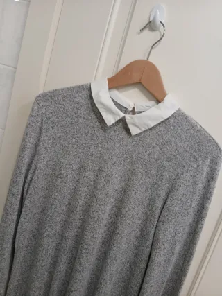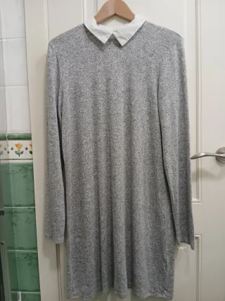 Vestido de punto fino con cuello blanco. - Manga larga. - Diseño jaspeado.