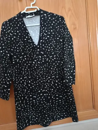 Vestido de Stradivarius con estampado de cebra. - Diseño con escote en V. - Mangas largas abullonadas. - Cintura elástica. - Falda con volante - Tejido muy ligero, ideal para la playa o piscina