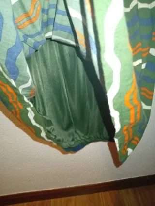 Vestido estampado green coast, talla m, una manga m ( ese lado es medio transparente la manga),apretado en la zona de la cadera hacia abajo, corto, usado varias veces, abertura con cremallera