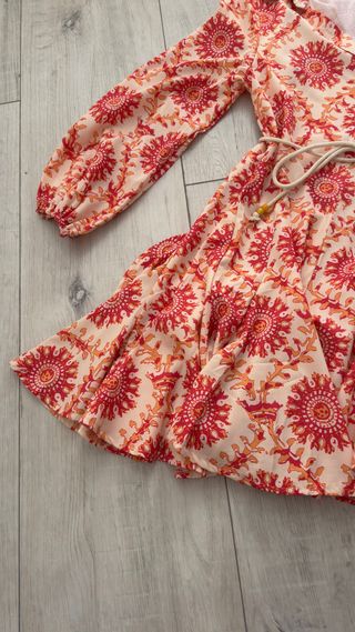 Vestido estampado floral naranja y rosa