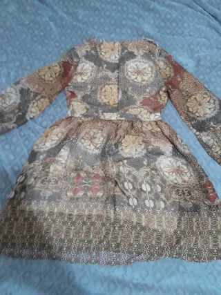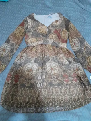 Vestido con un bonito estampado floral y geométrico. - Manga larga. - Diseño con escote en V. - Largo hasta la rodilla.