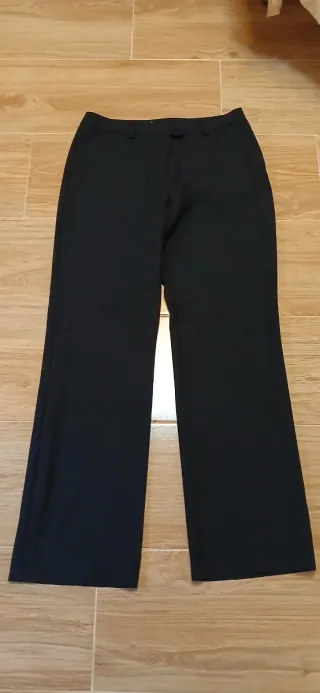 Pantalón de vestir elegante y formal. - Corte clásico. - Tejido de calidad. - Corte recto. - Talla 40 - Color negro. - Diseño clásico y elegante. - Con un 43% de lana. - Largo 1 metro. - Cintura 42 cm.
