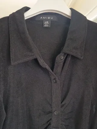 Vestido elegante de manga larga con detalle fruncido. - Cuello camisero. - Cierre de botones. - Diseño ajustado. - Talla cómo una 42.