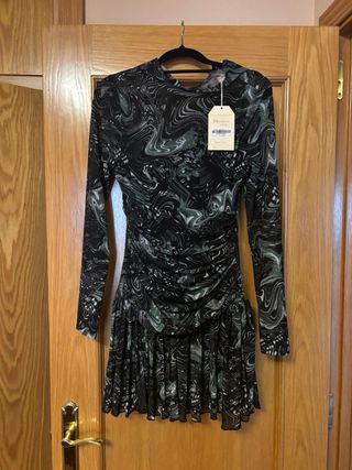 ¡Elegancia y sofisticación! espectacular vestido de satén con una caida increíble y un diseño lleno de detalles exclusivos. Es ideal para eventos, bodas o cualquier ocasión especial donde quieras destacar. ✨ DETALLES PRINCIPALES: Estado: Muy buen estado, muy bien cuidado. Tejido: Satén de alta calidad con brillo sutil. Cintura: Diseño plisado que estiliza mucho la figura. Mangas: Manga larga con detalle de cremalleras metálicas en los puños. 📏MEDIDAS (tomadas en plano): Sisa a sisa: 60 cm Cintura: 51 cm Cadera: 77 cm Largo de manga: 66 cm Largo total: 1,54 m 📏NOTA Yo mido 1,65 m y me queda largo