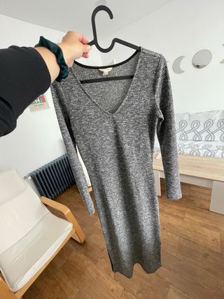 Vestido manga larga canalé. Apertura en los laterales en la parte de abajo. Talla S