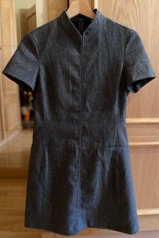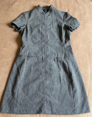 Vestido en color gris, ideal para cualquier ocasión. - Diseño con cuello alto. - Cremallera trasera. - Manga corta. - Diseño ajustado. - Largo 81cm. Axila 41cm.