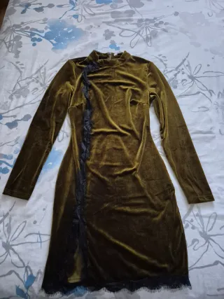 Vestido de terciopelo verde oliva con encaje