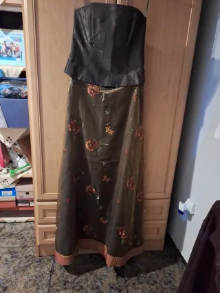 Vestido de fiesta largo maron, naranja y verde oli