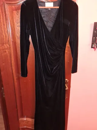 Vestido largo negro terciopelo elástico