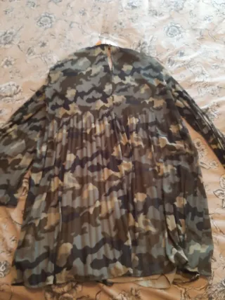 Vestido con estampado de camuflaje y manga larga. El diseño es plisado, lo que le da un movimiento muy bonito. - Estampado de camuflaje. - Mangas largas acampanadas. - Diseño plisado.