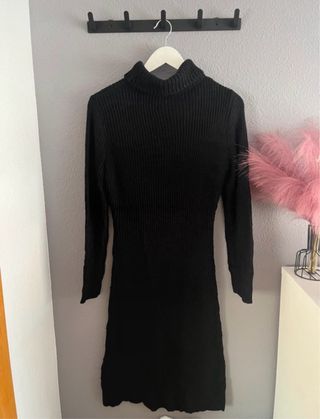 Vestido jersey cuello alto negro