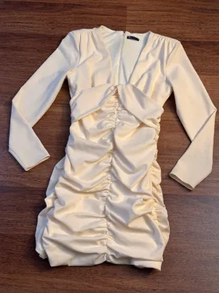 Vestido elegante de Zara con manga larga y detalle fruncido en la parte delantera, puesto una vez -talla XL -Elastica. - Cuello alto. - Diseño ajustado. - Tejido suave y cómodo.