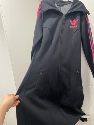 Vestido a media pierna, no queda muy corto. Tiene un largo ideal, es deportivo ya no fabrican este modelo y está muy bien conservado... De Adidas y eso marca la diferencia. - Diseño en color negro con detalles en rosa futsia. - Cremallera frontal. - Bolsillos con cremallera.