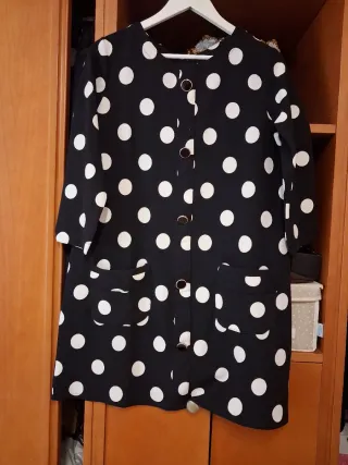 Vestido de punto con un divertido estampado de lunares. - Diseño de manga larga. - Bolsillos frontales. - Cierre de botones.