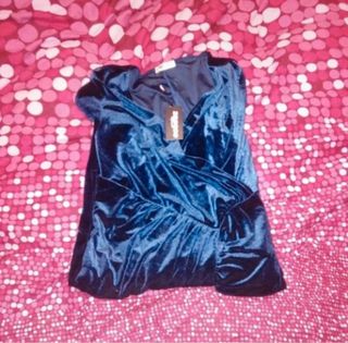 Vestido largo de terciopelo con un diseño elegante. - Material: Terciopelo - Corte: Largo - Color: Azul