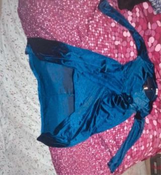 Vestido puesto una vez en tonos azul claro con encaje y espalda cruzada. Talla XS pero yo suelo usar S y me queda bien
