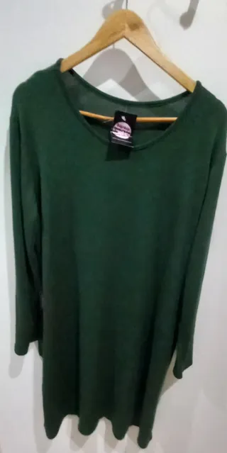 Vestido de manga larga en color verde. Su diseño es versátil y cómodo. - Tejido suave al tacto. - Corte holgado. - Largo hasta la rodilla. - Bolsillos