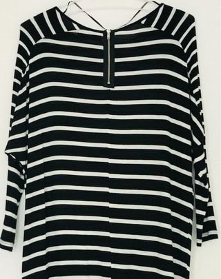 Vestido de mujer con un diseño a rayas. - Diseño de rayas horizontales. Vestido de punto fino cremallera en la parte trasera. Talla M, medida de axila a axila 53cm, largo 88cm. Totalmente nuevo #vestido #vestidomujer #robe #robefemme #punto #rayas #negroyblanco
