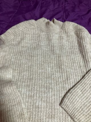 Vestido de punto en color beige, ideal para un look cómodo y elegante. - Tejido de punto con textura. - Diseño de cuello alto. - Manga larga. Talla una S pero da talla para una M