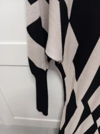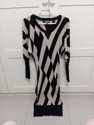 Vestido elástico con un llamativo estampado geométrico. -Tiene elástico y se adapta al cuerpo desde una talla 38/40. - Diseño de manga larga. - Corte ajustado. - Bajo y puños en contraste.