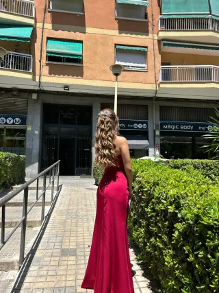 Vestido largo de color rojo, ideal para eventos o fiestas. - Diseño elegante y fluido. - Tejido ligero y cómodo.