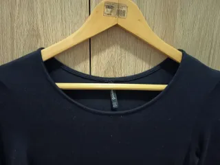 Precioso vestido negro de manga larga. Puesto una sola vez, en perfecto estado, ideal para estás fiestas. - Diseño liso y elegante. - Bajo con acabado ondulado.