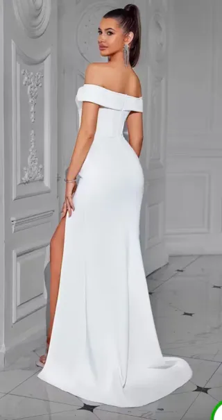 Vestido largo blanco con abertura.