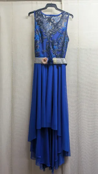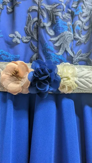 Vestido de fiesta azul con detalles