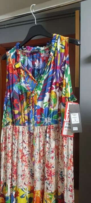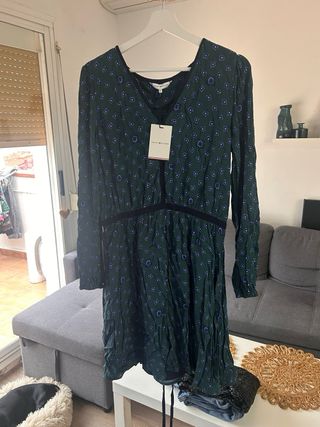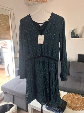talla S (más una M). Totalmente nuevo sin estrenar. Se cierra con la cuerda que lleva el vestido a la cintura, diseño cruzado.