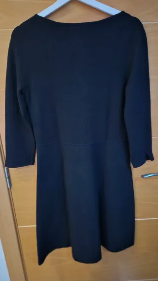 Elegante vestido de Massimo Dutti en color negro. - Tejido de punto. - Corte recto, por debajo de la rodilla. - Manga larga. - Detalle en cintura.