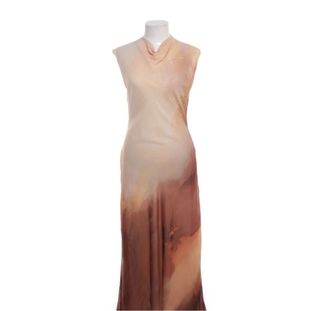 Elegante vestido largo de Mango con un estampado abstracto en tonos beige y marrón. Ideal para invitadas. Solo usado en una boda en abril de 2024. - Diseño sin mangas. - Cuello drapeado. - Corte recto y fluido.