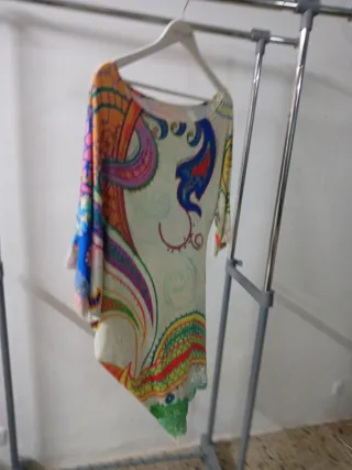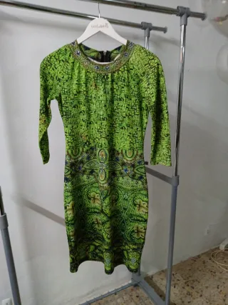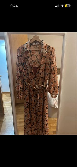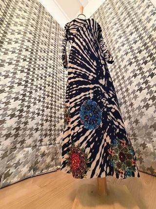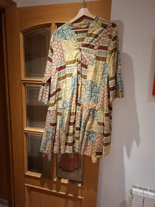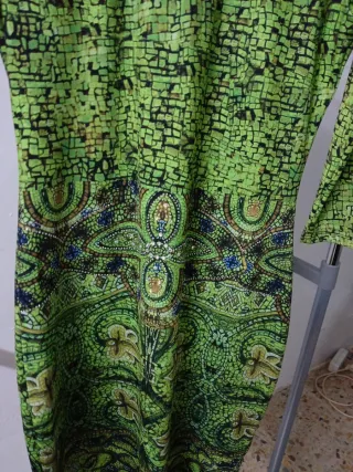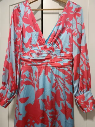 Vestido largo con un llamativo estampado. -No hago envíos NO HAGO ENVÍOS NO ACEPTO BIZUM NI PAGOS POR WALLAPOP SOLO EFECTIVO ENTREGA EN PERSONA GRACIAS - Diseño de manga larga. - Corte entallado en la cintura. - Falda con caída. - Estampado floral abstracto.
