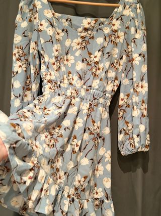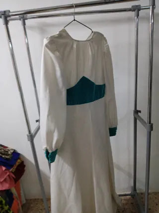 - Cintura elástica. - Mangas largas abullonadas. - Falda con volantes. El vestido está presentado en una modelo con las medidas que se ven en la foto: 102–76–105. En el pecho: medio contorno de 48 cm, se adapta cómodamente a un busto de hasta +-102 cm. La cintura tiene elástico: medio contorno de 30 cm en reposo, se estira hasta aprox. 42 cm, ajustándose bien a una cintura de 76 cm. En la zona de la cadera el corte es suelto, adecuado para una cadera de 105 cm. El vestido fue usado una sola vez para un evento, en excelente estado.