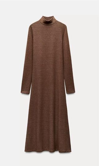 Vestido de Zara con cuello alto y manga larga. - Tejido suave y cómodo. - Corte recto y elegante.